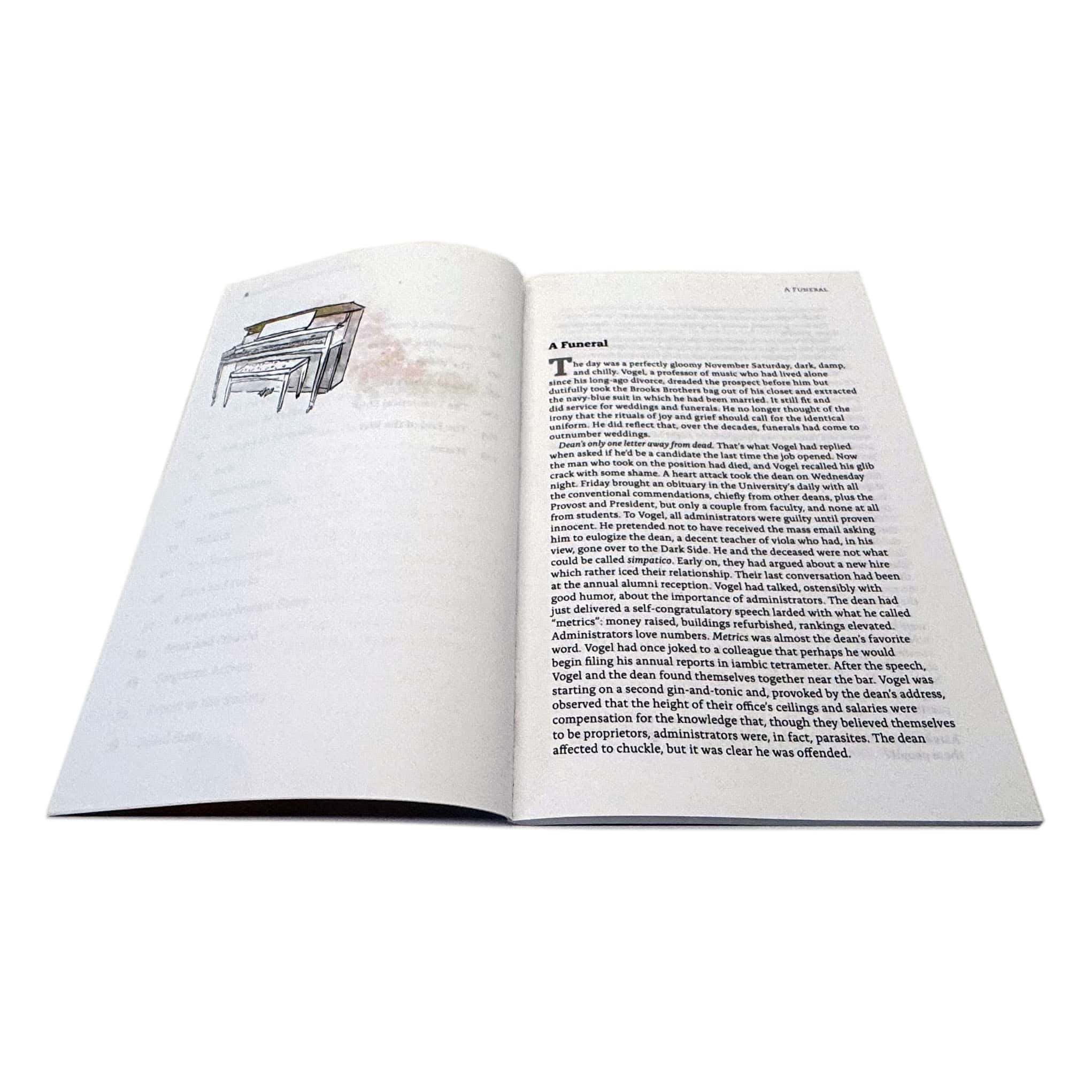 Perfect-bound paperback. One hundred and ten pages, with a color cover and color illustrations by Jay Holley sprinkled throughout.